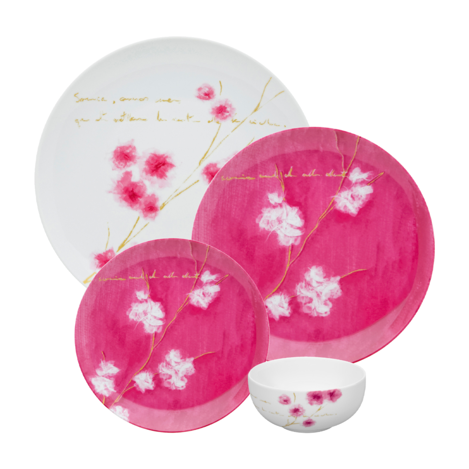 1 Dinner Plate, 1 Dessert Plate, 1 Bread and Butter Plate and 1 Individual Bowl