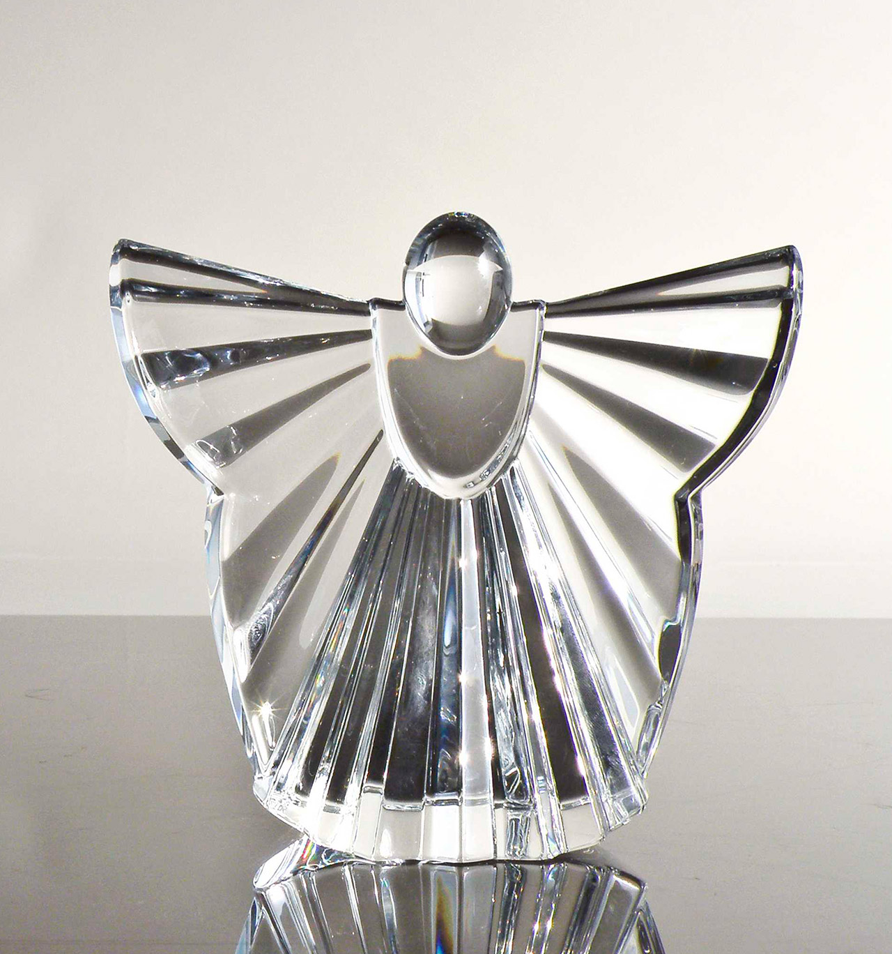 Angel Sculpture I Angelus. This customizable gift, representing the Angel Gabriel and the Annunciation, gives a special touch to Christmas decorations, thanks to its pure form and the sparkling play of light provided by the crystal’s pleated effect.