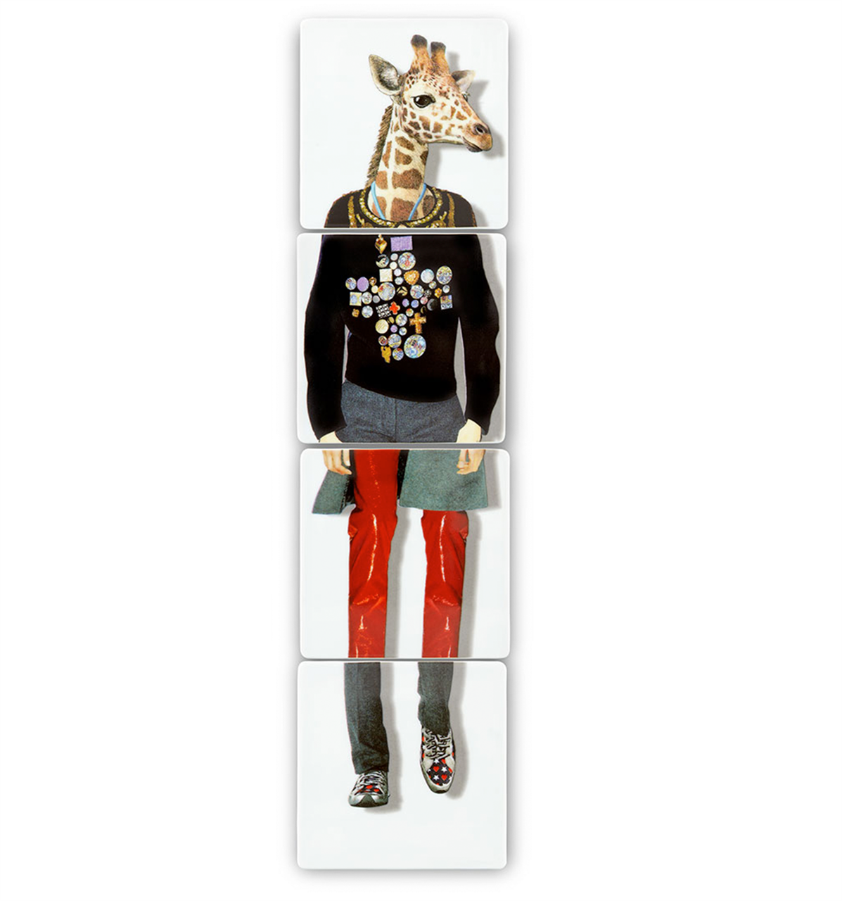 Set 4 Coasters Love Who You Want. Intermingling contemporary and haute couture designs of the house of Christian Lacroix, the new Christian Lacroix Maison – Vista Alegre gift collection is composed of various items representing exuberant and extraordinary personalities, such as “Mister Tiger” or “Doña Jirafa”, clearly illustrative of the unique imagination of the French brand.
